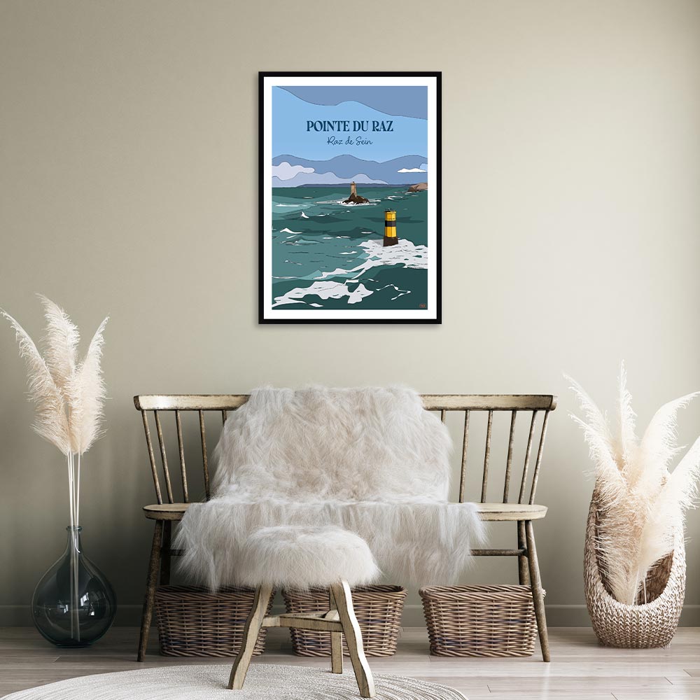 Cette décoration murale est une affiche qui représente la Pointe du Raz.