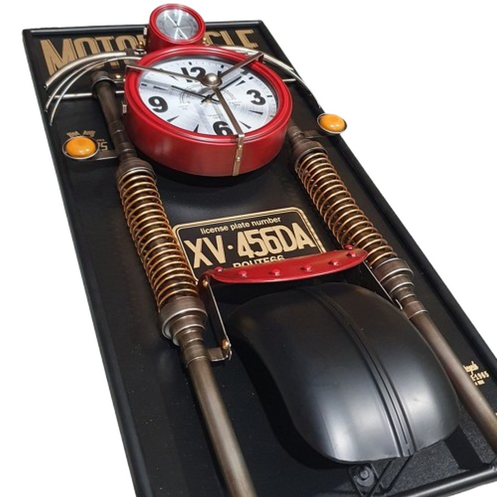 Horloge Originale Moto Rouge – référence 06.513 : Dimension : Hauteur : 120cm & Longueur : 60cm & Épaisseur : 18cm.